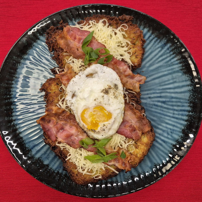 Placki ziemniaczane z serem,boczkiem i jajkiem